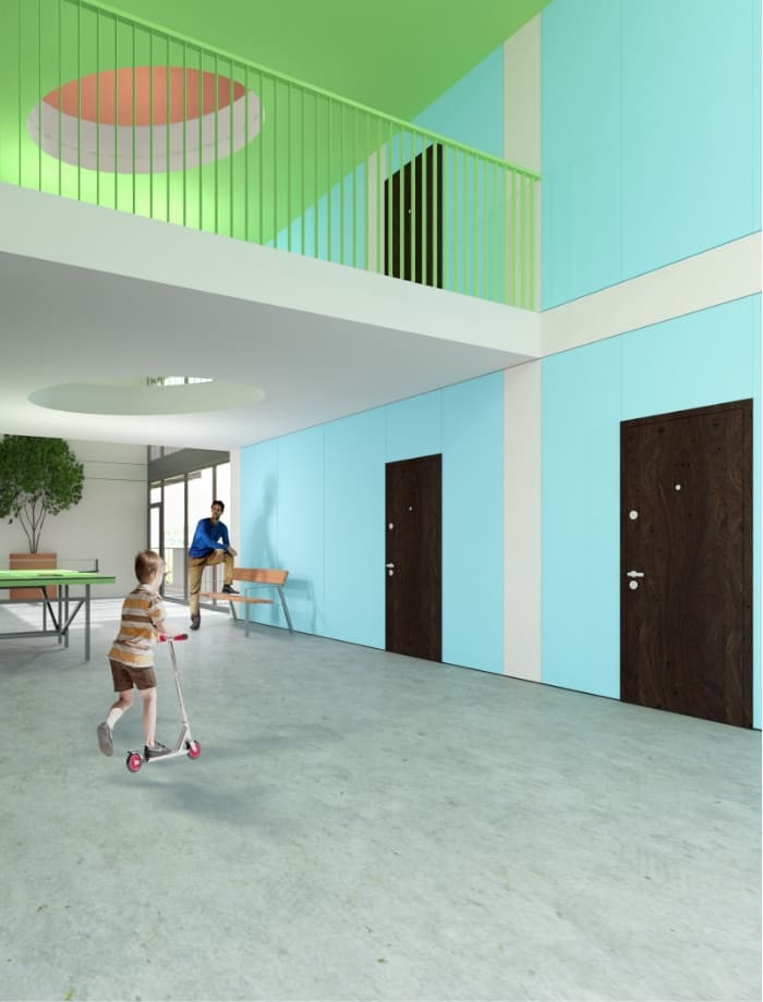 Praktické dispozice. Vinylové podlahy, které nestudí ani v zimě. Extra velká okna, aby byl interiér příjemně prosluněný.